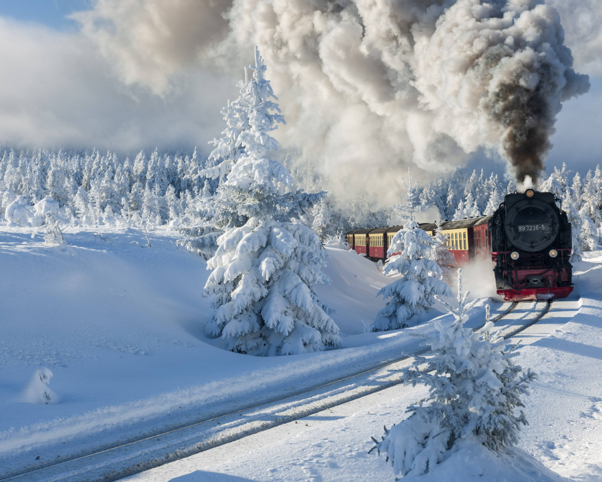 Besonders eindrucksvoll ist eine Fahrt mit der historischen Brockenbahn, die sich durch die verschneiten Wälder schlängelt und atemberaubende Ausblicke auf die Winterlandschaft ermöglicht – der perfekte Ort, um unvergessliche Winterfotos aufzunehmen.